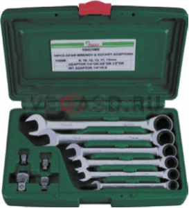 НАБОР ТРЕЩОТОЧНЫХ КОМБИНИРОВАННЫХ КЛЮЧЕЙ И АДАПТЕРОВ 10 ПРЕДМЕТОВ