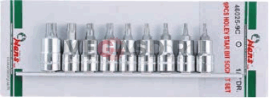 НАБОР ТОРЦЕВЫХ ГОЛОВОК СО ВСТАВКАМИ TORX С ОТВЕРСТИЕМ 1/2” 9 ПРЕДМЕТОВ.