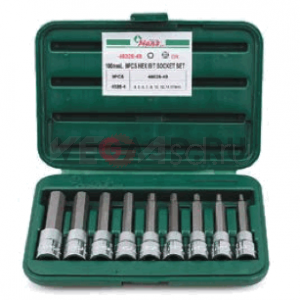 НАБОР ТОРЦЕВЫХ ГОЛОВОК СО ВСТАВКАМИ HEX ДЛИННЫЕ 1/2” 9 ПРЕДМЕТОВ.