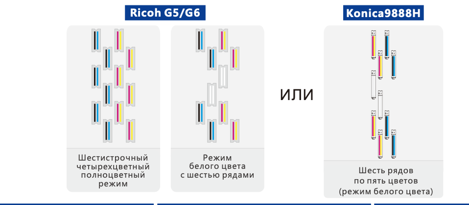 Схема конфигурации печатающих головок Ricoh G5/G6 ИЛИ Konica 9888H
