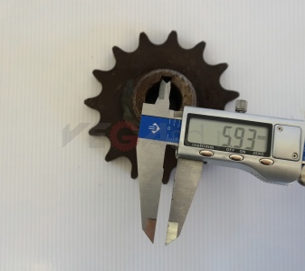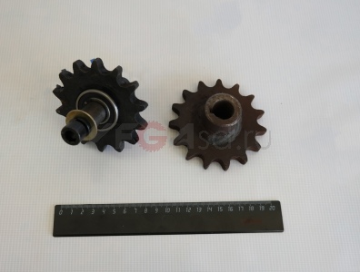 На подающей - 15 зубьев, на принимающей - 14.