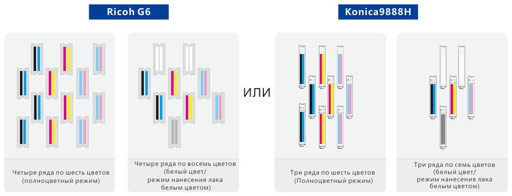 Конфигурация японской печатающих головок Ricoh G6/ Konica 9888H