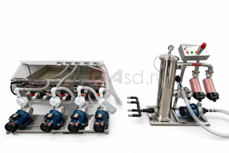 304 нержавейка полностью + редукторы вместо ремней + 4 автономные секции + подогрев и насос на каждую секцию + песочный фильтр в стандарте.Технические характеристики